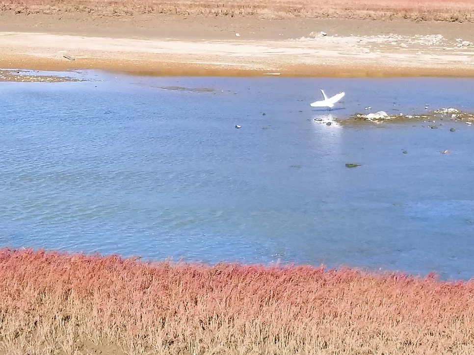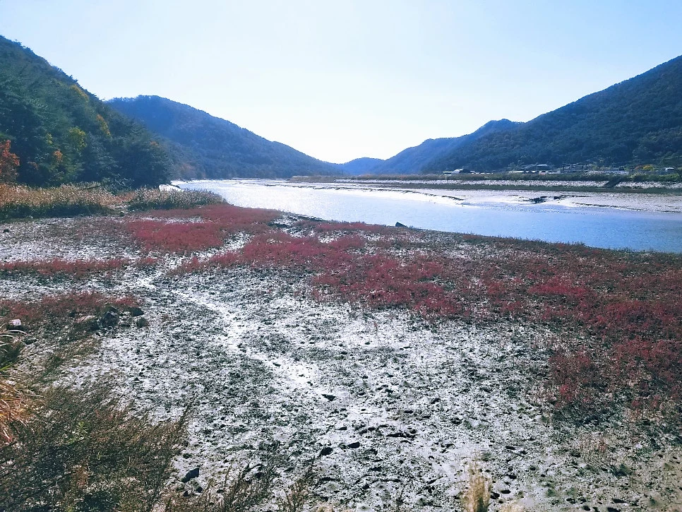 가을 접어지며 붉어지는 함초와 머리숱 탐스러운 갈대와 바닷물에 이는 물비늘 아름다운 인천강.