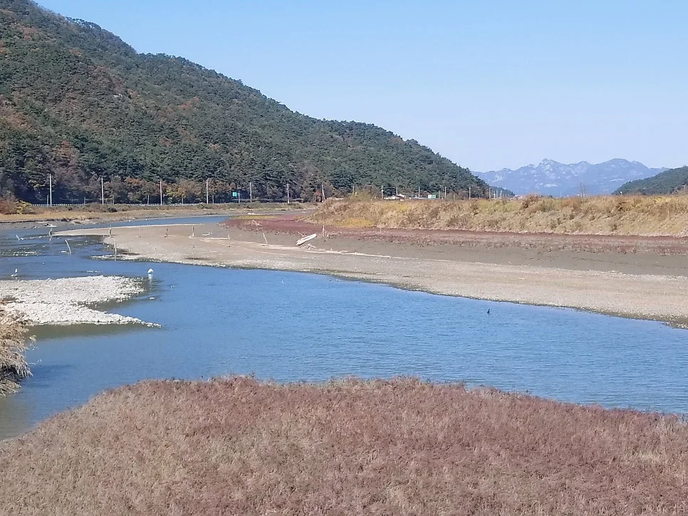 왼쪽 물고랑이 선암사에서 흘러온 민물이고 중앙 질펀한 강은 바닷물로, 게서 먹잇감을 찾는 왜가리들 나래짓이 바쁘더군요.