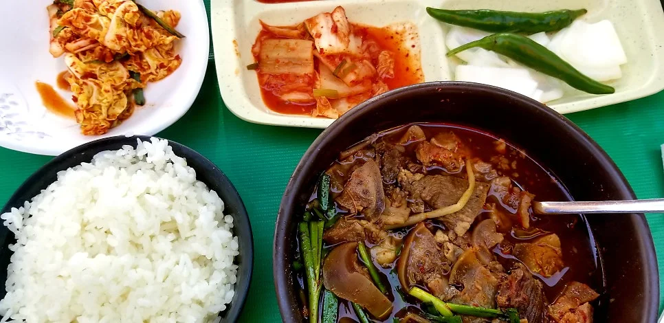 벌건 국물의 소머리국이 뚝배기 그들먹하게 푸짐하다. 공깃밥도 여느 식당과는 다르게 수북하다.
