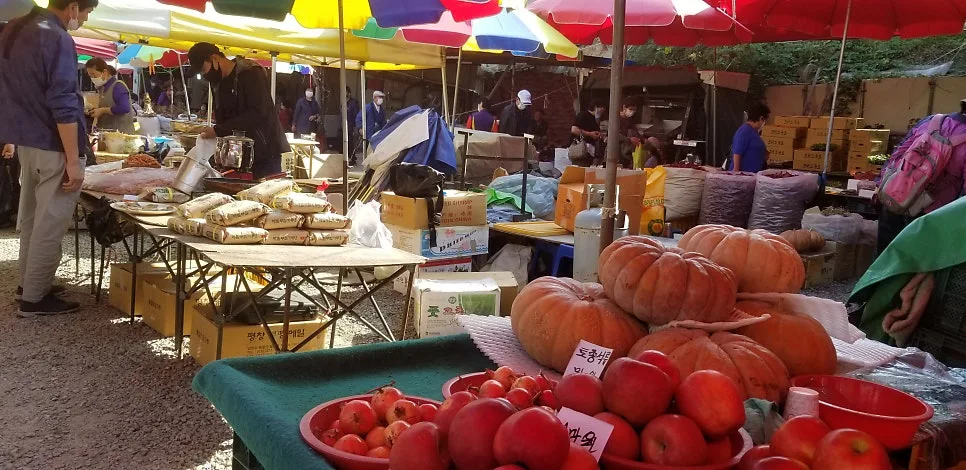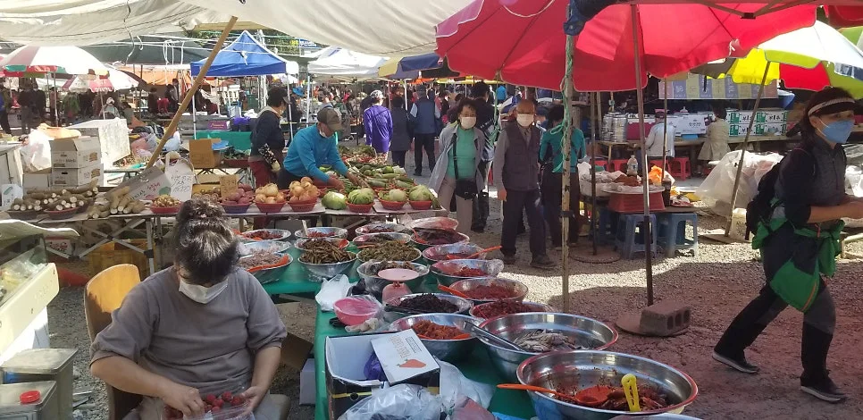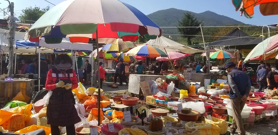 물건을 사고파는 사람들 사이에 정이 오고 가는 장터, 덤이 있고 흥정을 잘하면 값도 깎아주는 완전 시골장 분위기다.