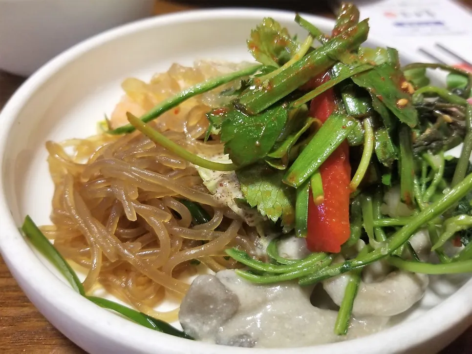 미나리와 부추 겉절이나 샐러드 및 오징어볶음요리는 좋은 재료를 사용했다는 게 입안에서 식감으로 느껴졌다.
