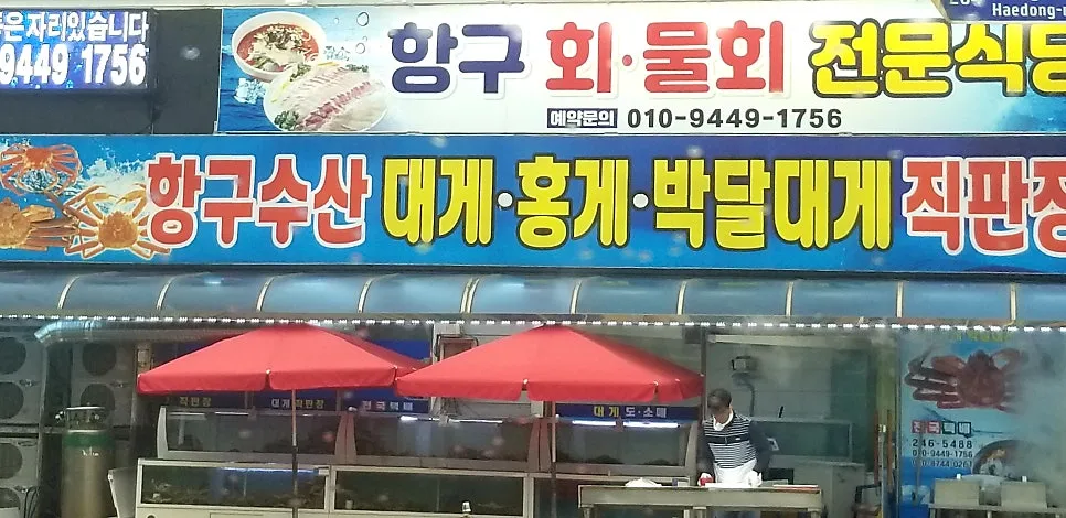 포항 죽도시장에 닿을 즈음 고맙게도 비는 수굿해졌다.