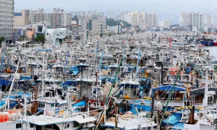 질척한 어판장 긴 골목이 끝나는 도로에서 맞은편을 바라보니 첩첩 무리 진 엄청난 수의 배들이 보였다.