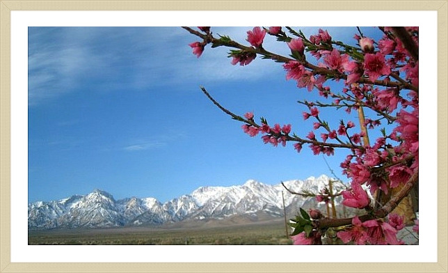 미 본토 내에서 가장 높은 산인 4418미터 휘트니산이 복사꽃 저 너머로..