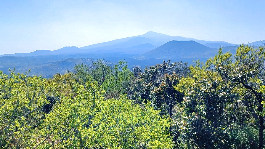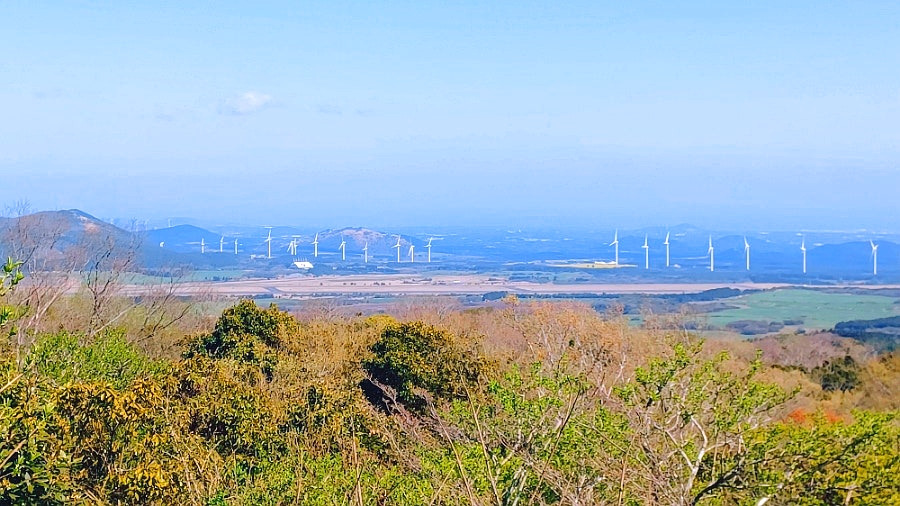 저 멀리 한라산 기슭에는 작은 화산체인 오름이 여러 개 울멍줄멍 산재해 있다.