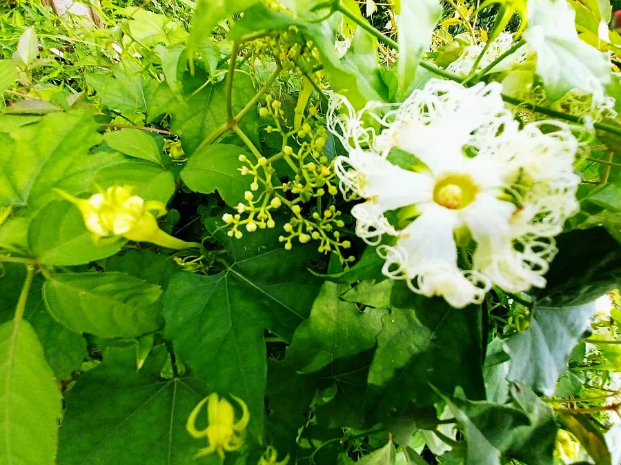무성한 한삼덩굴/박꽃처럼 하얀 하늘타리꽃