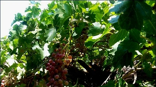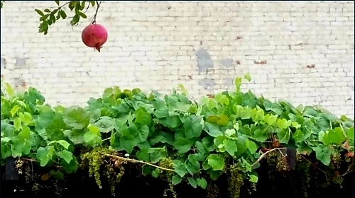 곧 벌어질 듯 영근 석류와 포도주용 자잘한 포도송이들
