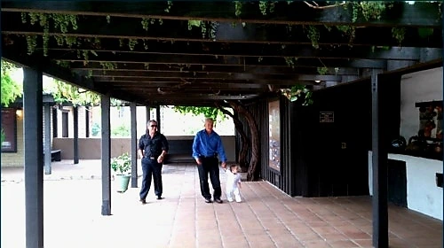 뜰을 산책 중인 멕시컨 할아버지