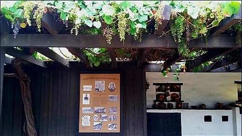 사진과 함께 아빌라 어도비의 역사가 설명된 액자