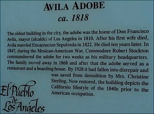 멕시코 전쟁 시에는 LA에 진주한 미 스탁턴 사령관이 아빌라 어도비를 임시 사령부 건물로 임시 사용됐다.