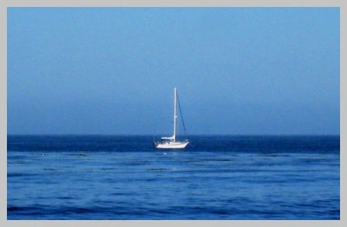 색채의 향연을 펼치는 바다에 정물로 뜬 요트는 꿈꾸듯 아스라이 멀다.
