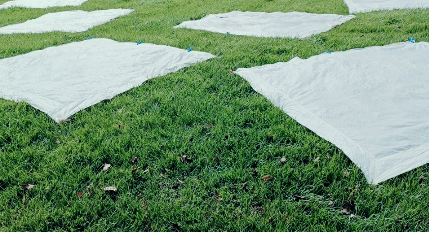 베이지색보다 옅어 거의 희득스레한 미색 천을 꺼내 잘 펴서 풀밭에