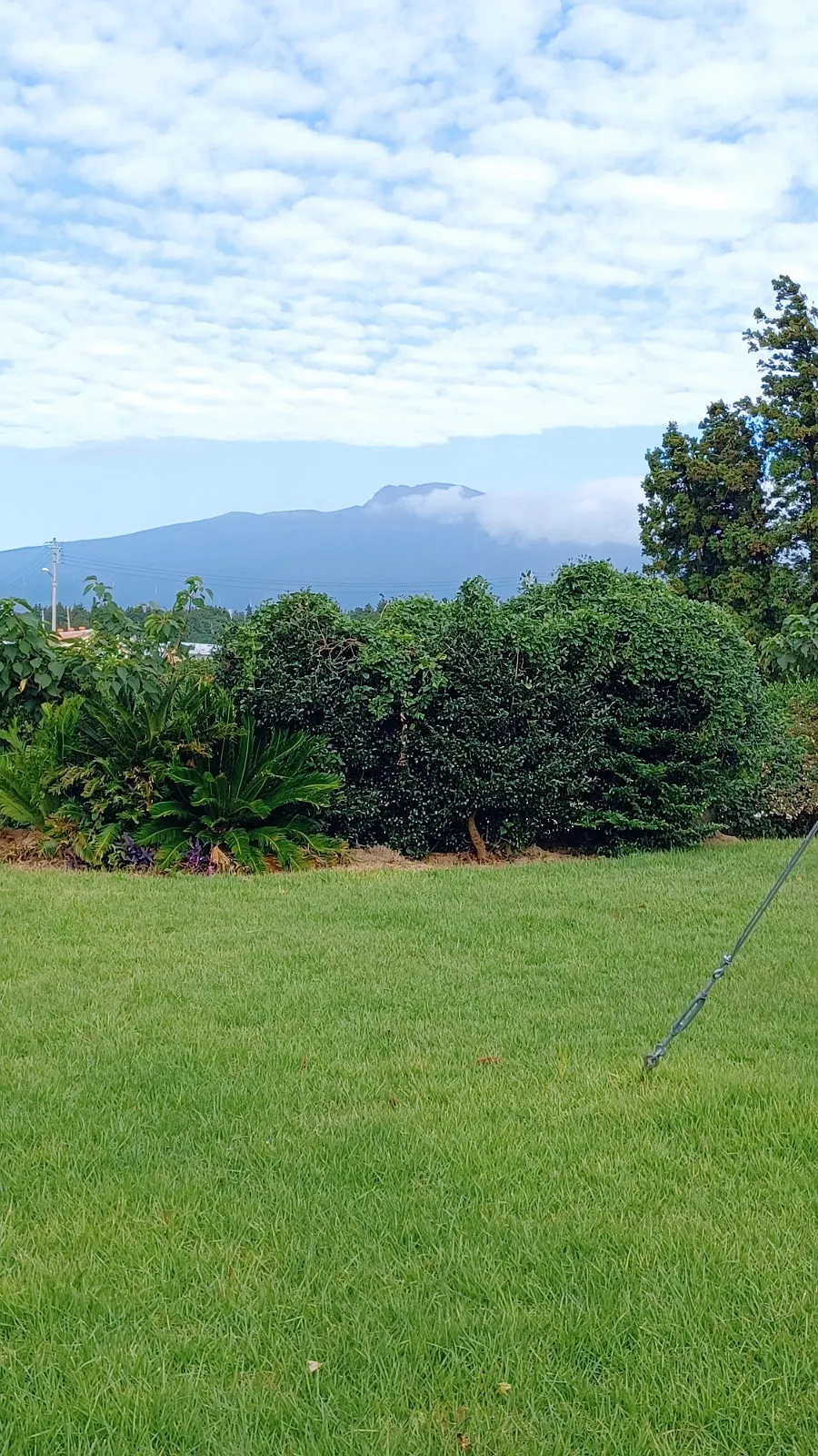 잘 다듬은 푸른 잔디밭이 인상적이라 잠깐 둘레를 돌아보니 저만치 한라산이 액자 속 그림처럼 떠올랐다.