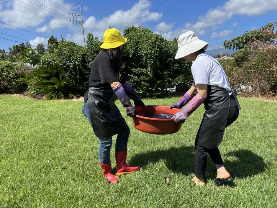 서귀포 시청 리포터 찬스로 감물 염색과 쪽물 염색을 체험하는 프로그램에 참여했다.