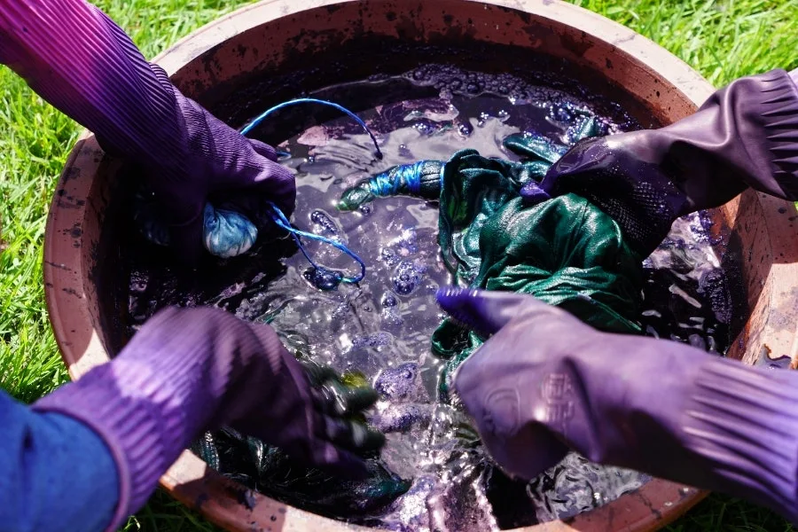 인디고블루보다도 더 짙은 감청색 염료 안에 셔츠를 넣어 주무르자 연둣빛부터 나타났다.