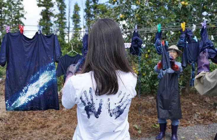 그 순간 셔츠가 공기에 닿자마자 파란빛 선연해지며 예의 쪽빛이 드러나
