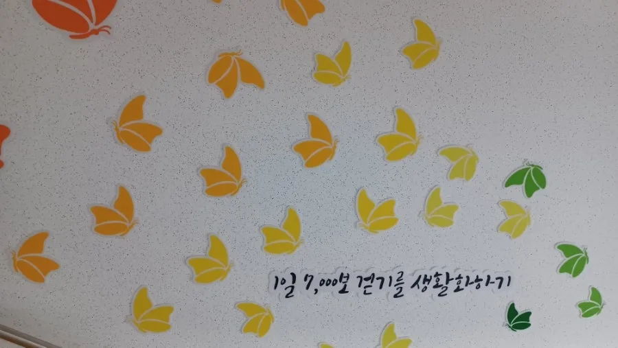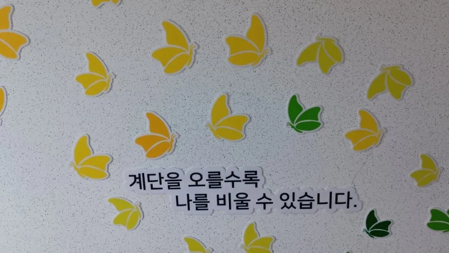 이층으로 오르는 나비계단에 무지개가 뜬 듯 색색이 고운 글씨와 그림이 새겨져 있었다.