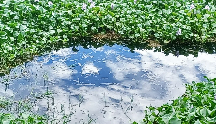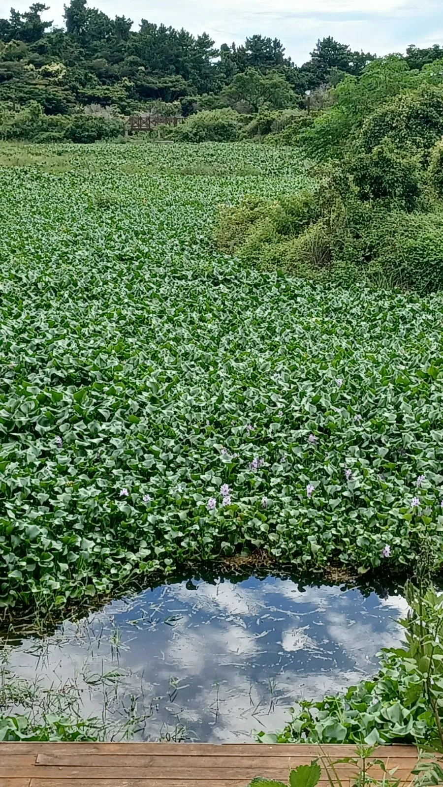 부레옥잠 연보랏빛 꽃 가득 피어난 연못, 꽃 못지않게 구름 반영도 섬세하니 고왔다.