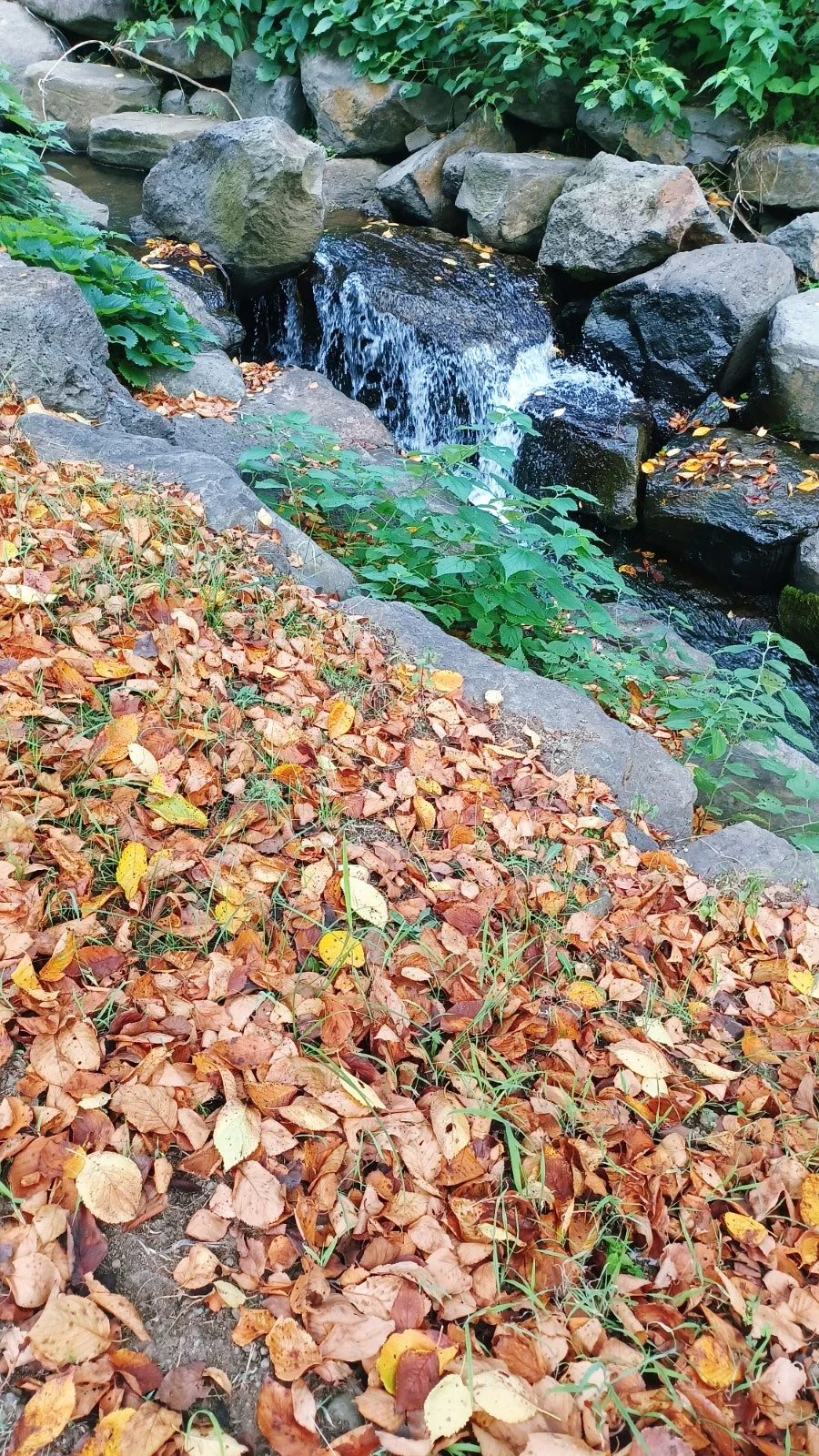 개울 건너 벚나무 발치엔 어느 결에 단풍 진 이파리 낙엽 되어 주욱 깔려있었다.