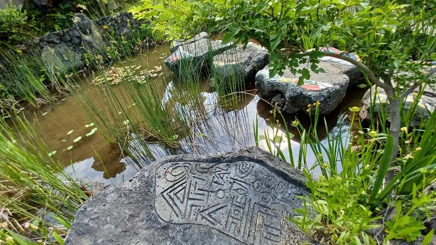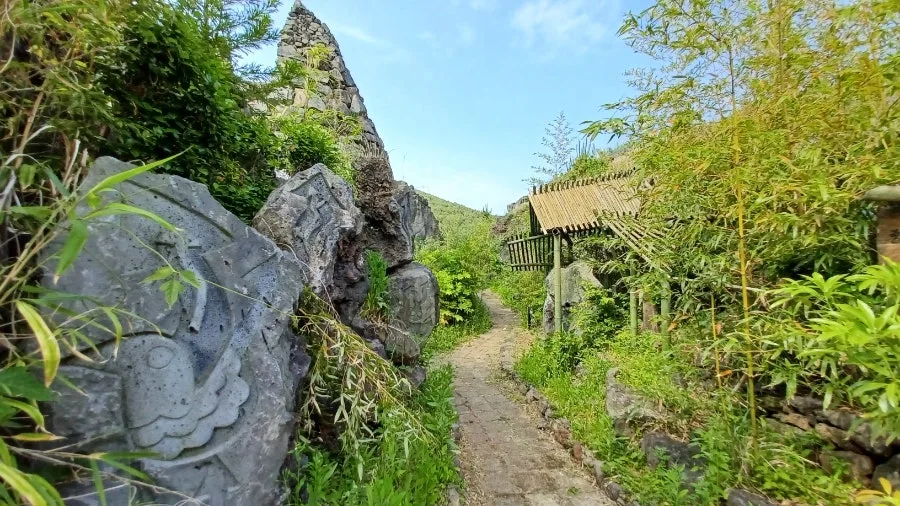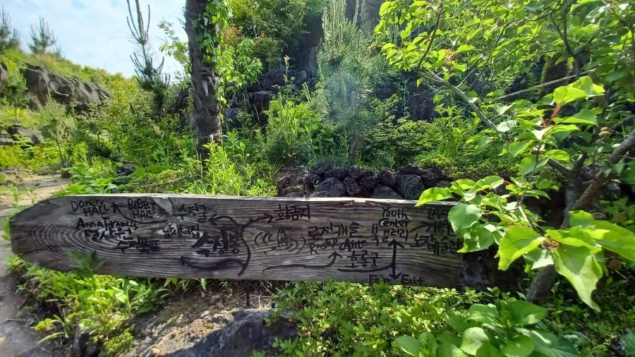 곶자왈 거친 돌밭 다듬어 설화에서 모티브 딴 스토리를 얹으니 청이 못, 화룡점정, 수정궁, 하늘샘으로 재탄생된다.