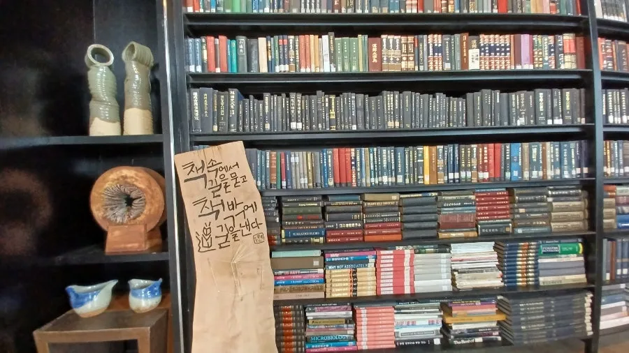 용암이 굳은 현무암 빌레 속에 자리 잡은 도서관이라 습도 온도 조절은 자동으로 된다.