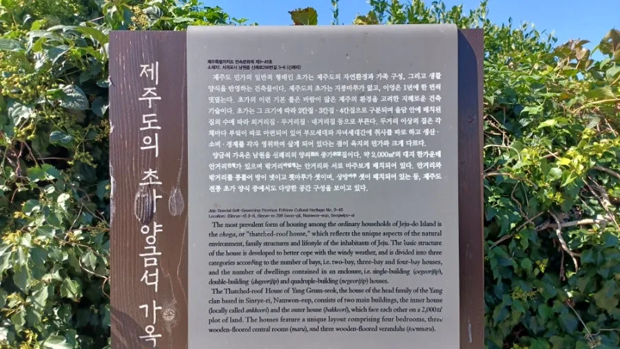 제주도 민속자료 제3-45호로 문화재 지정을 받은 초가집이다.