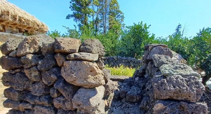 큰길에서 집으로 들어가는 올레는 야트막한 돌담이 아늑하게 둘러쳐져 있었다.