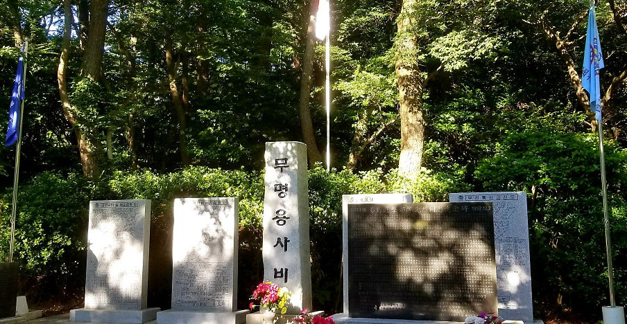 부산 온 김에 태종대나 들러보기로 했다, 하늘 쾌청한 터라 주저 없이 택한 행선지다. 전망 좋은 등대만을 보러 가는 게 아니라 다시 한번 찾아볼 장소가 있기도 해서였다. 9월은 인천상륙작전과 9.28 서울 수복일이 들어있는 특별한 달이니까. 몇 년 전에 수국꽃을 보러 태종대 갔다가 의외의 정경을 만났던 생각이 났기 때문이다. 느닷없다 할 정도로 으슥한 송림 사이에서 본 바 있는, 한국동란 때 스러져 간 무명용사들의 추모비였다.