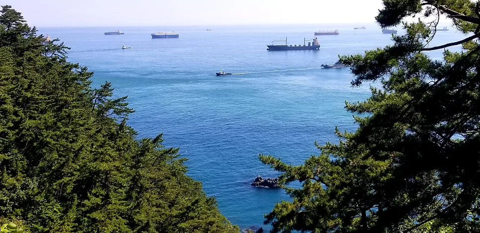 폭양 따가웠으나 사방에서 몰아치는 해풍은 시원했다. 참기름을 바른 듯 잎새마다 윤기 자르르 흐르는 동백나무 쥐똥나무 후박나무 목련 곰솔과 해송 마가목이 어우러진 숲. 칡덩굴 멍게덩굴 등덩굴도 무성히 얼크러설크러졌다. 숲향기 밀밀한 산책로를 따라 자살바위 전망대 모자상을 거쳐 영도등대로 내려갔다. 거칠 거 없이 마구잡이로 달겨드는 거친 바람, 그러나 주전자섬이 마주 보이는 바다에 뜬 여러 척의 입항대기 컨테이너 선박은 미동조차 없었다. 나라 안팎이 여러모로 뒤숭숭한 시국이나 국제적으로 이뤄지는 경제활동은 무풍지대이듯 여전스레 활기찼다. 그나마 천만다행이다 싶었고 일면 안도감이 들었다.