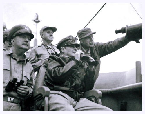 당시 미 해군은 인천항의 간만의 차가 평균 7m임을 들어 이 작전을 허락하지 않았다네요. 항구에 상륙하기 전에 월미도를 먼저 점령해야 하는 데다 선단의 접안지역이 좁고 암초가 많은 데다 상륙 후 시가전이 불가피한 점 등의 이유로요. UN군이 상륙작전을 펼치기에는 최악의 지형이라며 완강히 반대하였지요. 반면 맥아더 장군은 이런 난점이 오히려 적의 허점을 찌르는 기습이 될 수 있다며 인천상륙 주장을 굽히지 않았다고 해요. 결국 8월 28일 미국 합동참모본부로부터 승인을 얻어 역사적인 인천상륙작전을 펼치게 됐답니다.