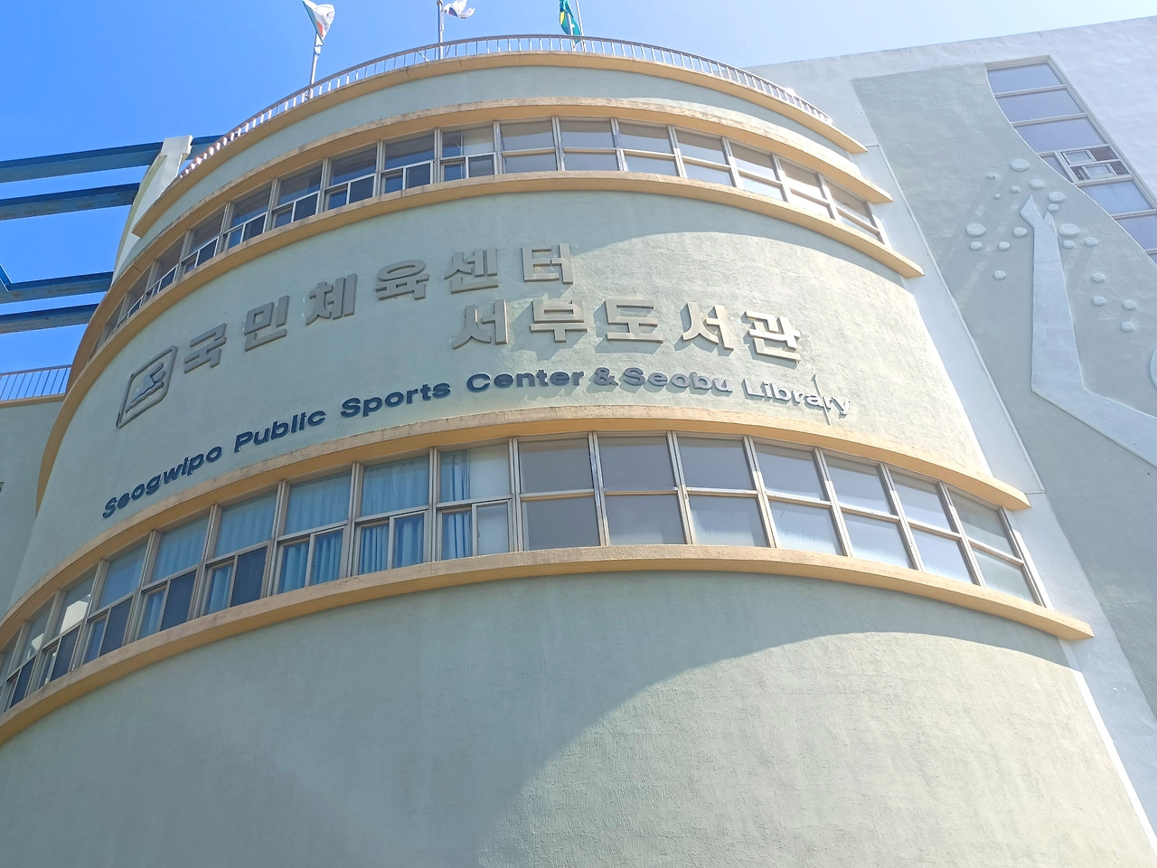 중문보건소 맞은편 서귀포국민체육센터이자 도서관 건물 초입에서다.