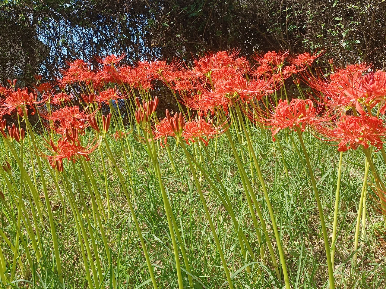 아무리 군락 이뤄 펴있어도 상사화는 촌 아낙처럼 소박하고 수수한데 비해 석산 꽃은 화려하다 못해 고혹적이기조차 하다.