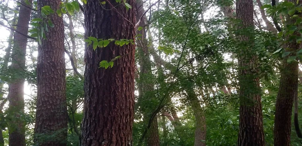 송림 지나 저만치 산 모롱이가 벌겋게 물들었다.