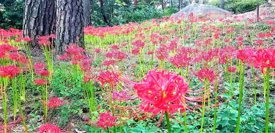 꽃무릇이야말로 한두 포기로는 성이 안 차고 무리를 이뤄야 비로소 볼품이 난다