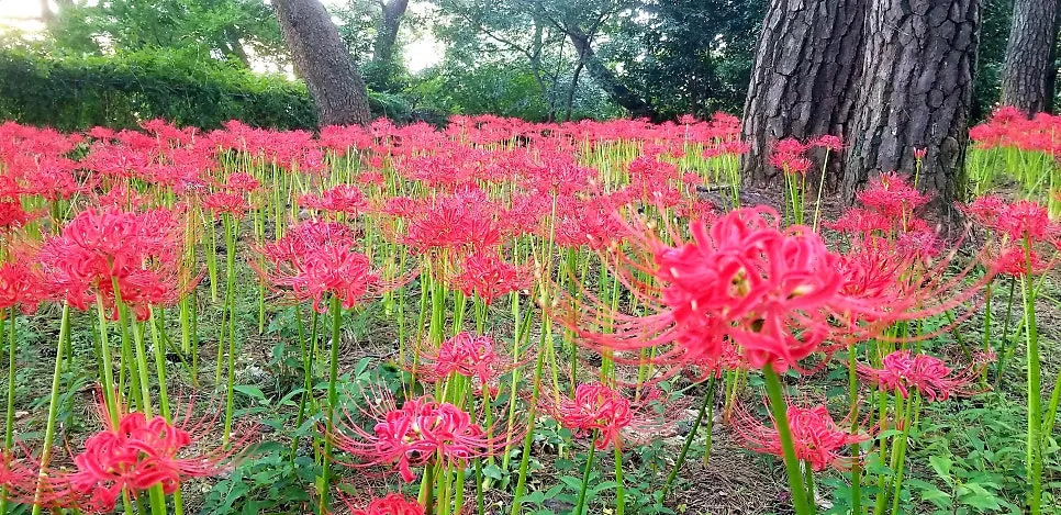 작년에도 진다홍 야하게 피었던 한밭 자리 군락 이룬 꽃무릇 단지.