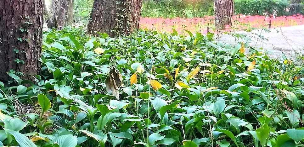 꽃무릇은, 초여름에 피는 연자색 상사화와 닮은 점이 하나 있다.