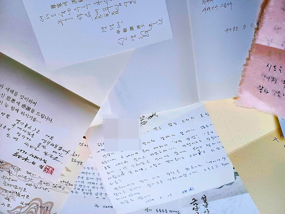 편지 글이야 오로지 내게나 귀할 뿐인 추억 보따리이다. 가치나 쓸모로 친다면 없어진다 해도 그만인, 그저 그런 사소한 편린들. 되도록 단순하게 살자, 집착 남기지 말자, 하면서도 연하장 속지 일부는 되챙겨두었다. 오래전에 쌓은 인연들이 새삼스러워서였다. 다사로운 매원 선생님 박양근교수 신경철교수 친필도 소중하게 다가왔다. 문우들과 후배들 다감한 글씨며 고등학교적 은사이신 남규우선생님과 큰아이 고3 담임였던 양승백선생님 필체도 반가웠다. 안 그래도 가뜩이나 복잡한 세상이다. 이 또한 언젠가는 한낱 티끌로 돌아갈 테니 부질없는 짓이긴 하다만. 이젠 서서히 주변 정리가 필요한 연배 아니던가.