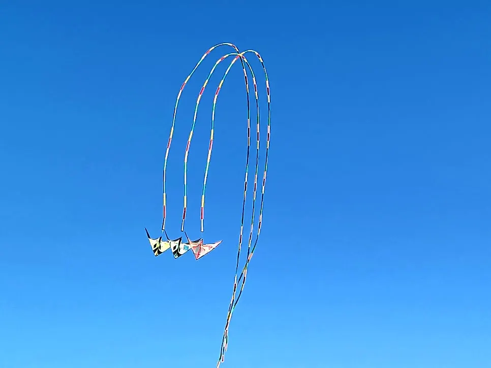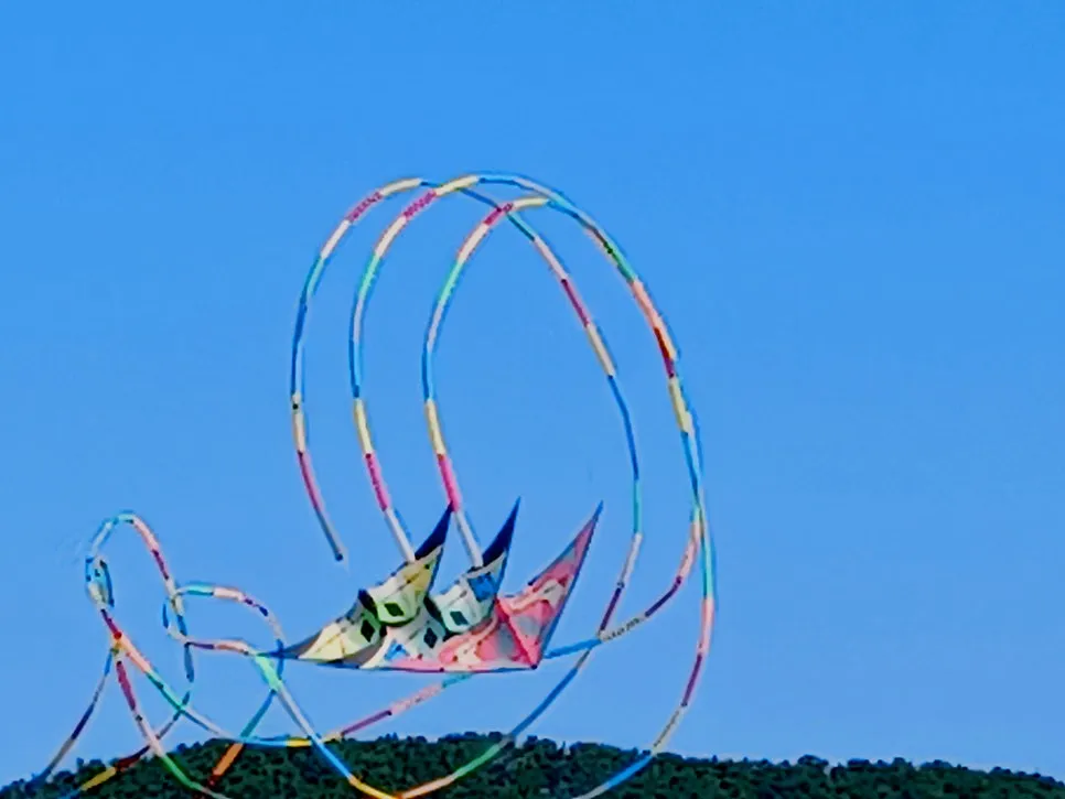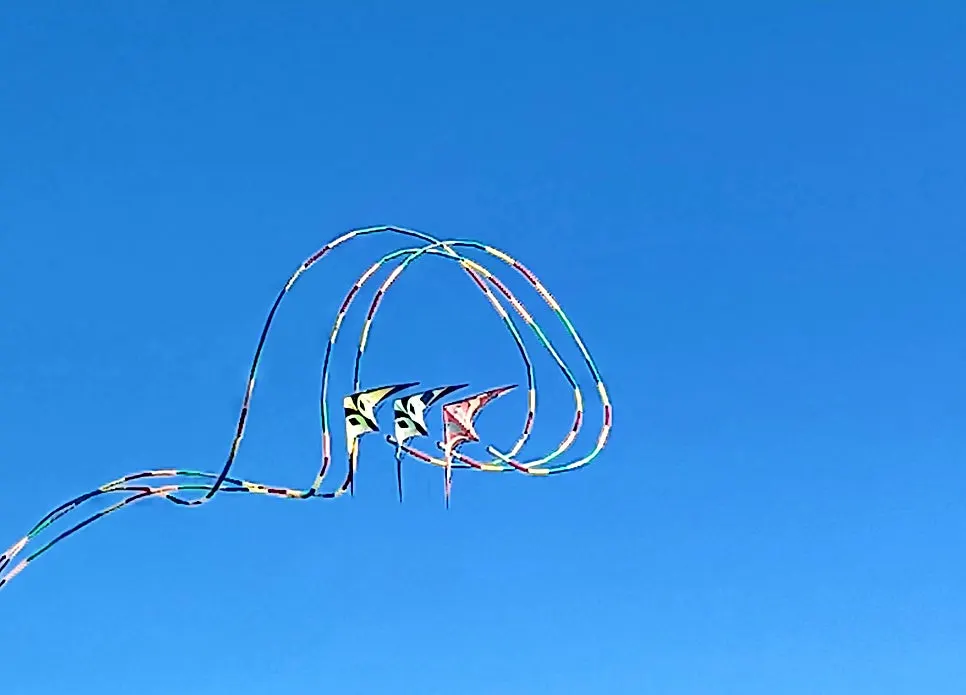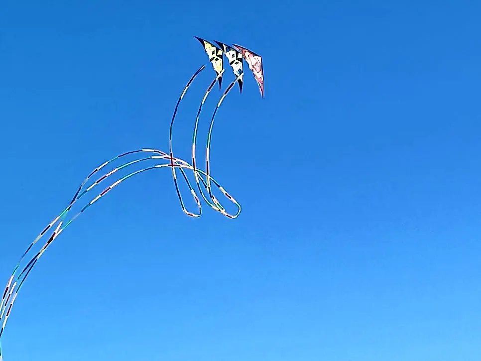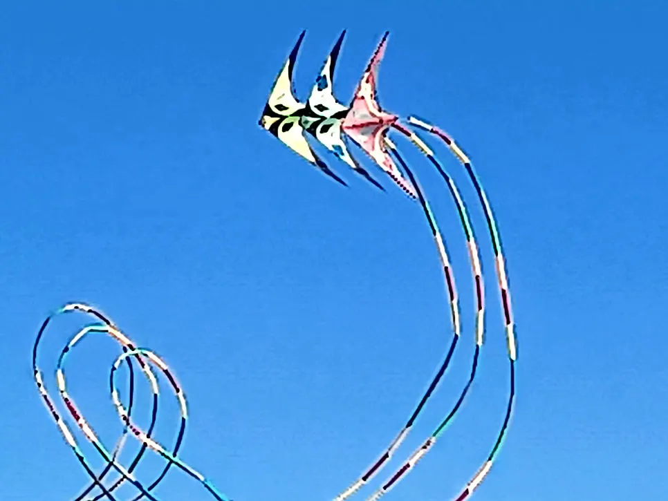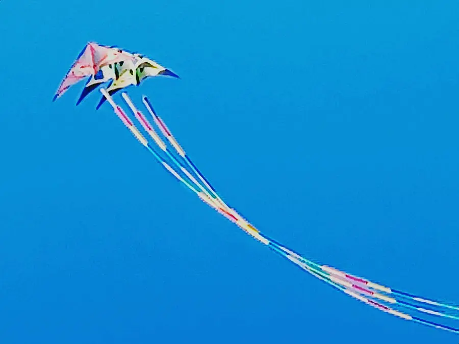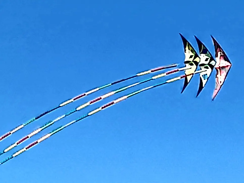 삼각편대를 이룬 가오리연은 긴 꼬리 나붓대며 구름 한 점 없이 짙푸른 하늘에서 자유로이 헤엄치고 있었다.