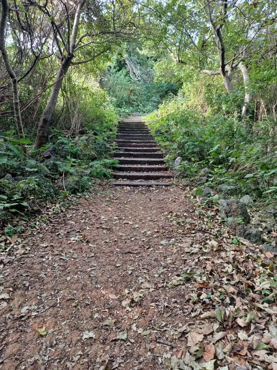 따라서 울퉁불퉁 거친 돌길이나 탐방로마다 매트를 깔아 맨발로 걸어도 좋을 만큼 폭신한 쿠션 길이지.