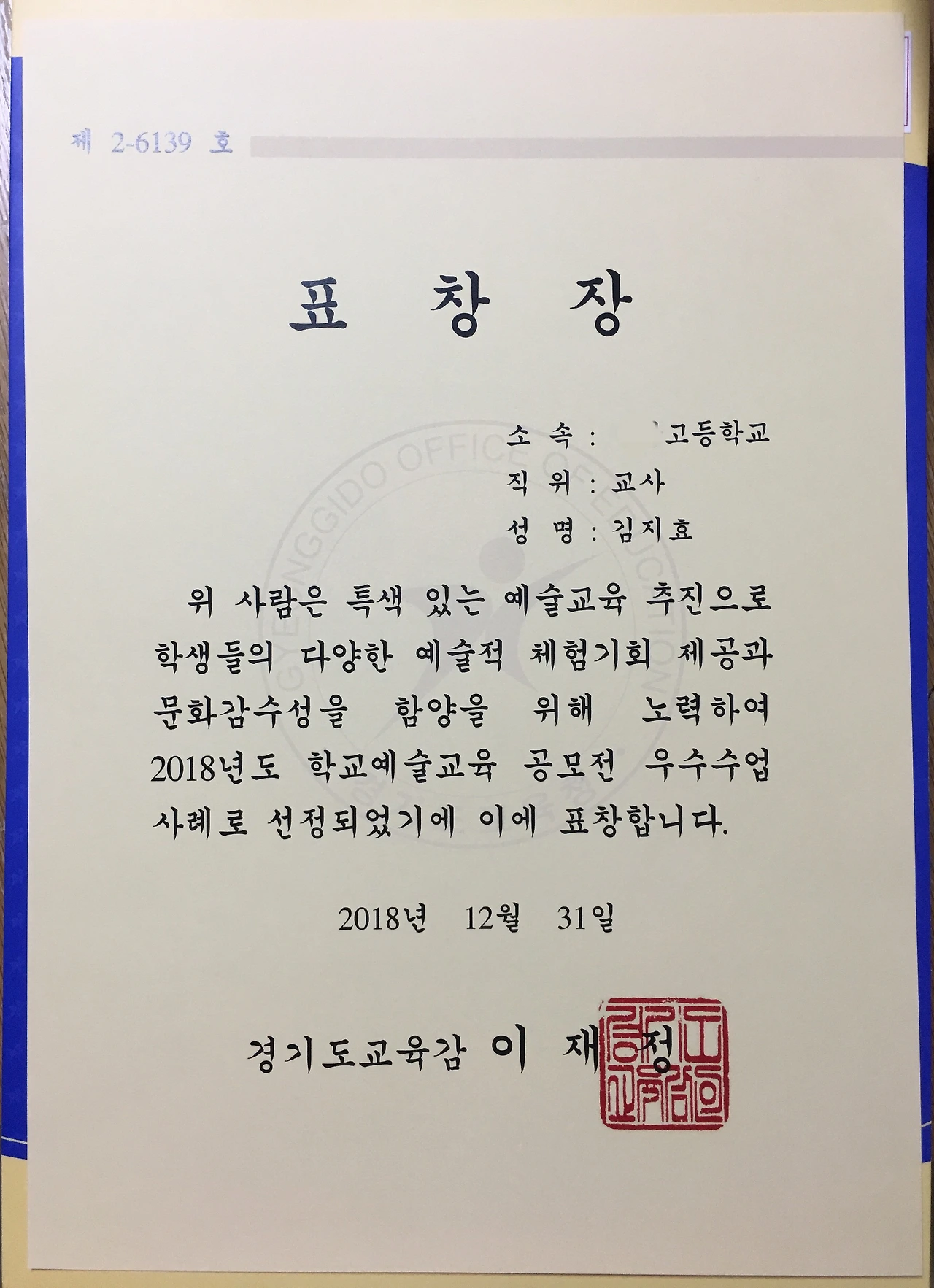 결과는 12월에 발표가 났었는데, 표창장은 올해가 되어서야 받았다.