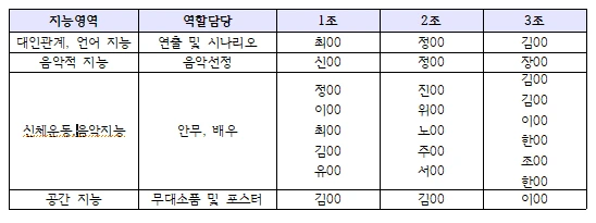 그러다 뮤지컬 만들기 수업에서 아이들에게 각각의 강점에 맞는 역할을 선택하도록 하는 도중, 내 머릿속에서 교육학-지능 이론에서 배웠던 '다중지능'이론이 순간 스쳐 지나갔다. 어떤 학생들은 노래-연기-춤을 잘하고, 어떤 학생들은 노래와 연기보단 미적 감각이 더 높아 그림을 그리거나 무대-소품 꾸미는 것을 더 잘한다. 또 어떤 학생은 글 쓰는 것을 좋아하고, 어떤 학생은 인간관계가 좋고 리더십이 있어 모둠을 잘 이끌어나간다. 이것이 지능과 연관된 듯하여 다시 한번 '다중지능'이론 책을 찾아 수업에 적용하기 시작하였다.
