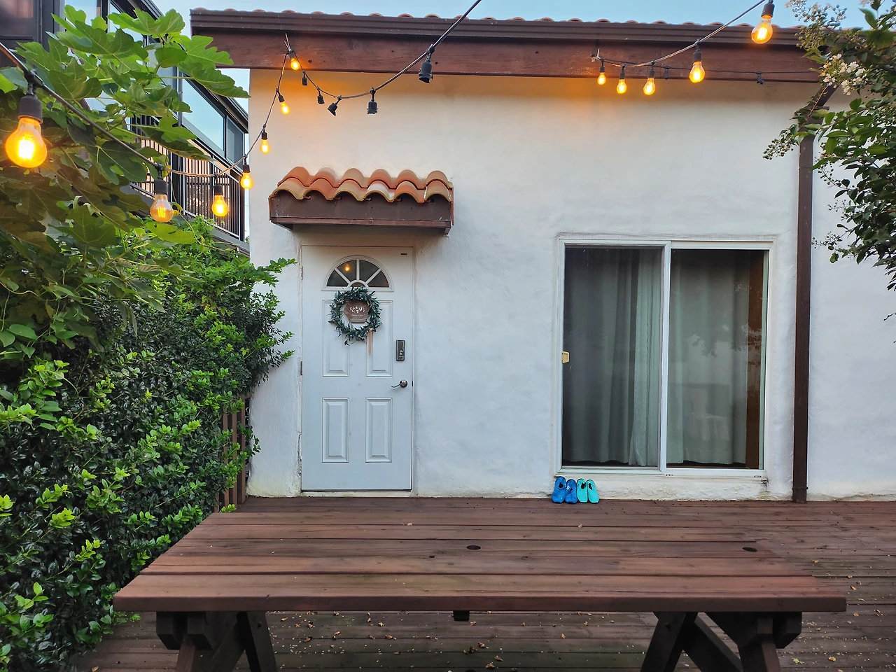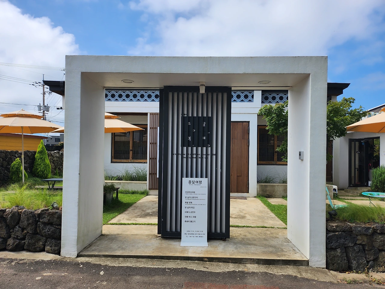 마지막 숙소는 구좌의 비자림 근처였다. 아무리 생각해도 너무나 탁월한 선택이었다. 주택 단지 내에 각자의 용도대로 예쁘게 집을 짓고 사는 마을 속에 있는 숙소였다. 아침이 되면 마치 주민이 되어 마을 산책을 하고, 비자림 까지든, 주변을 산책하며 아침의 촉촉함을 마음에 담을 수 있는 곳이았다.