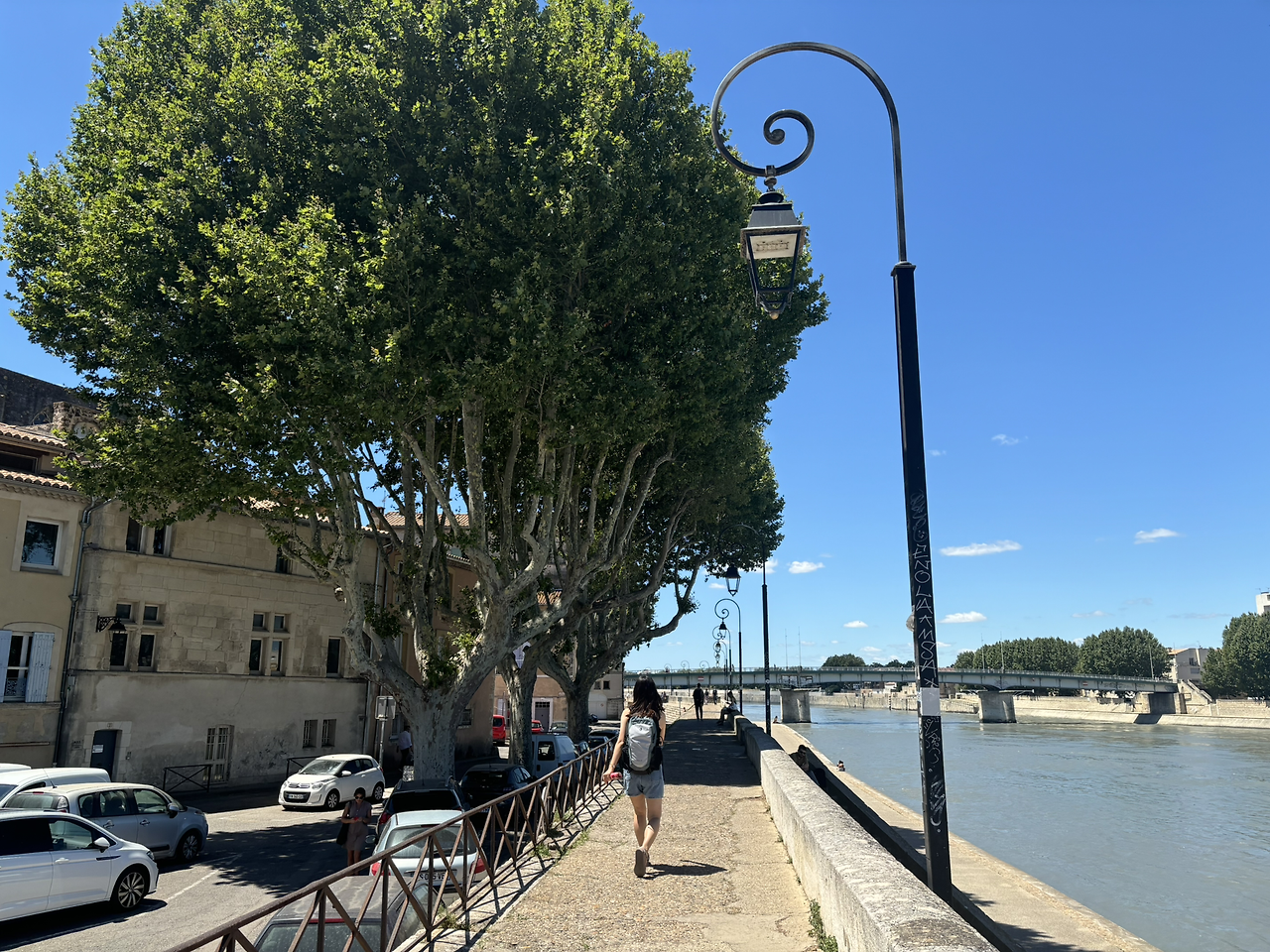 반고흐 퐁다시옹 전시관을 찾으려다 길을 잘못들어 마을의 가장자리로 가게 되었다. 거기에 강이 있었다. 센 강보다 넓은 론 강이 눈 앞에 펼쳐졌다. 큰 나무가 그늘이 되어주었다. 이곳에 앉아 햇살을 쬐고 강변을 바라보고 있는 것 만으로도 너무 좋았다. 론 강은 윤슬이 반짝거리고 반대편의 소박한 도시풍경이 펼쳐져 있다. 내가 본 강 중 가장 낭만적인 강이다.