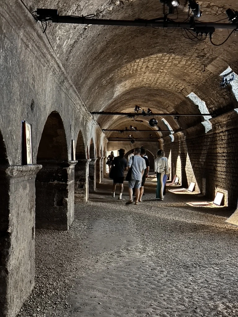 잠시 아이스크림을 먹고 쉰 후에는 지하 광장으로 들어갔다. 고대 로마인이 지하에서 포럼도 열고 광장처럼 물건도 팔곤 했다고 한다. 지하라는 말에 호기심이 생겨 들어갔는데, 지하의 긴 건축물만 대부분이고 유적물 같은 건 많지 않았다. 대신에, 그 긴 자리에 전시회가 진행되어 있어 공간을 채웠다. 현재와 과거가 한 자리에서 공존하는, 참 독특한 풍경이다.