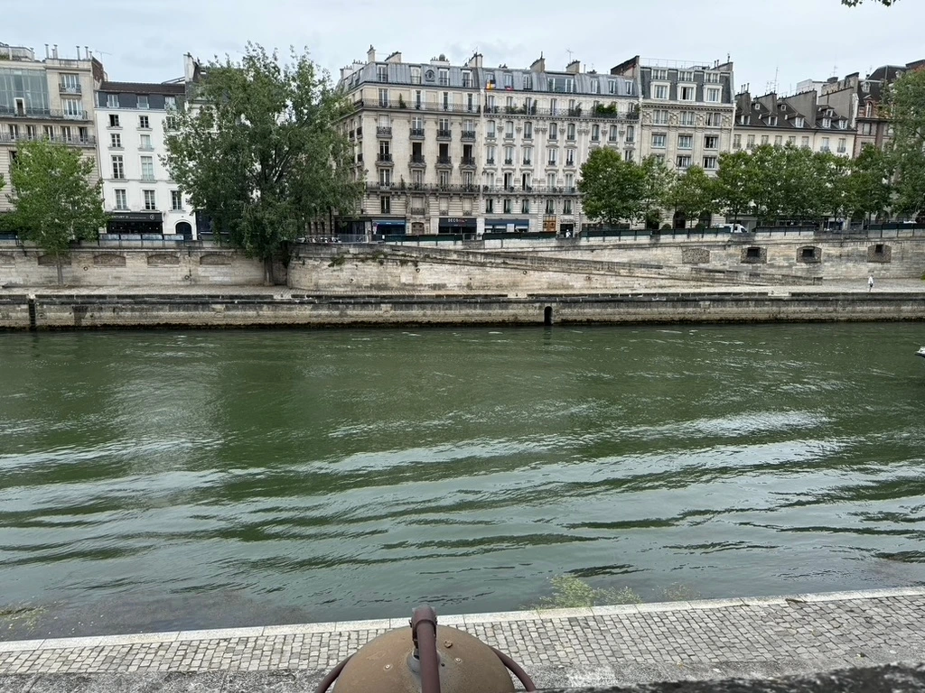 다리 근처로 들어가봤다. 경찰들이 특정 부근에 통행구간을 열고 패스쥬를 확인했다. 패스쥬를 찍고 센 강 인근으로 들어갔는데 사람들이 거-의 없었다. 오늘 여기서 개막식 하는 거 맞아? 하는 의문이 들 정도로 조용했다. 센 강을 쳐다봤더니 똥물이다. 솔직히 여기에 수영할 용기를 낼 사람은 많지 않을 것 같다. 시테섬 쪽으로 들어가서 천천히 걸어봤다. 개막식 행사를 볼 수 있게 하는 큰 스테이지가 하나 보였다. 하지만 그렇게 복잡할 시테섬에도 사람이 없었다. 몇몇 목에 신분을 착용한 기자가 간간히 지나갔다. 그 수보다 훨씬 많은 경찰이 지나다녔다.