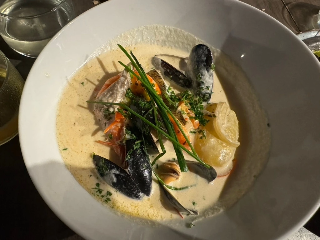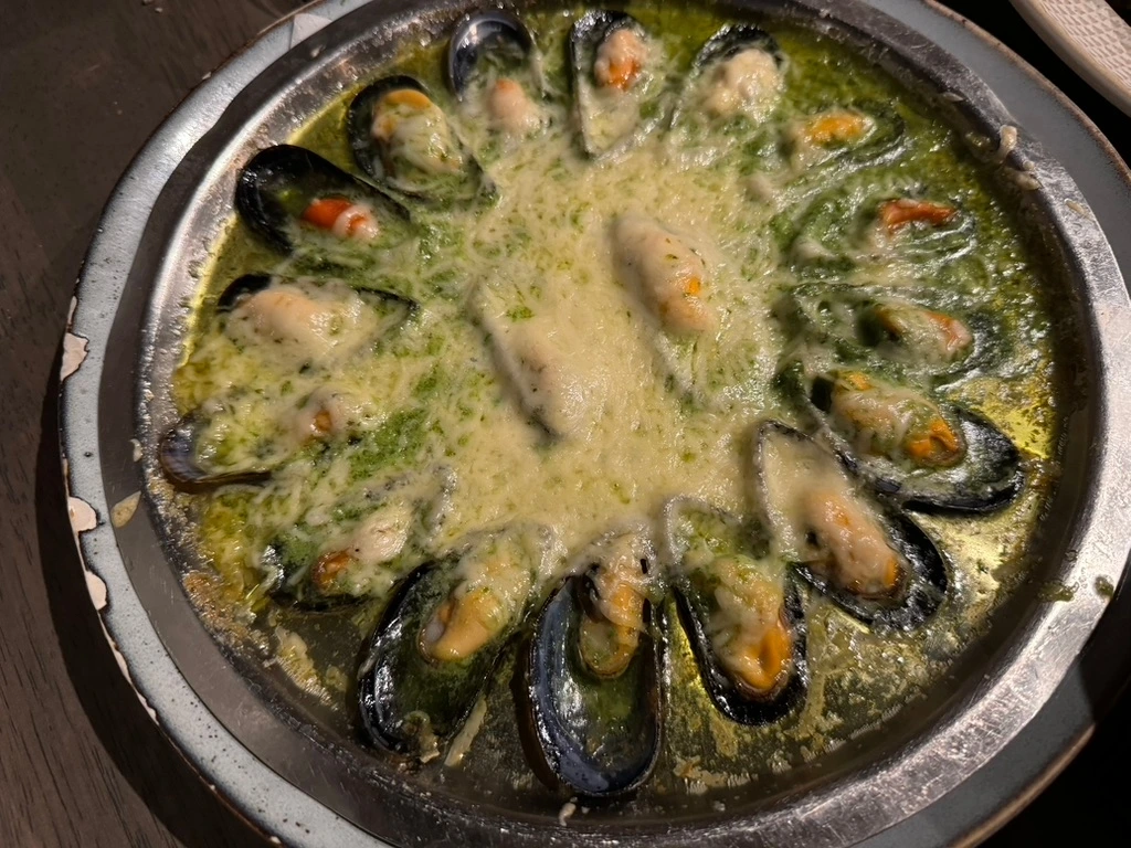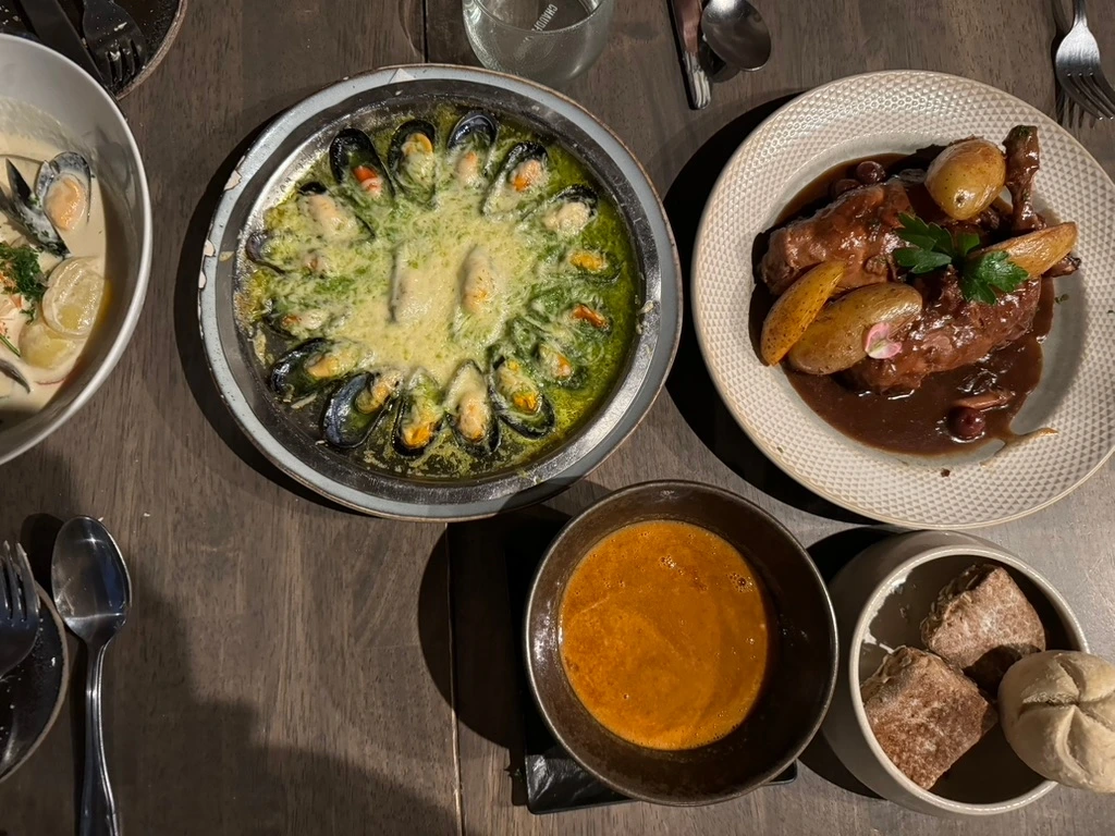 저녁에는 펜타곤 상점거리 부근에 있는 맛집을 찾았다. 식당에 들어와서 좁은 원형 계단을 따라 올라가니 2층에 자리를 내어주었다. 리뷰에 사진이 많았던 홍합 치즈와 추천 메뉴들을 시켰다. 귀엽고 동그란 기본 제공 빵과 버터는 정말 고소하고 맛있었고, 메뉴 중 추천받은 생선 요리는 특히 소스부터 맛이 정말 깊고 맛있었다.