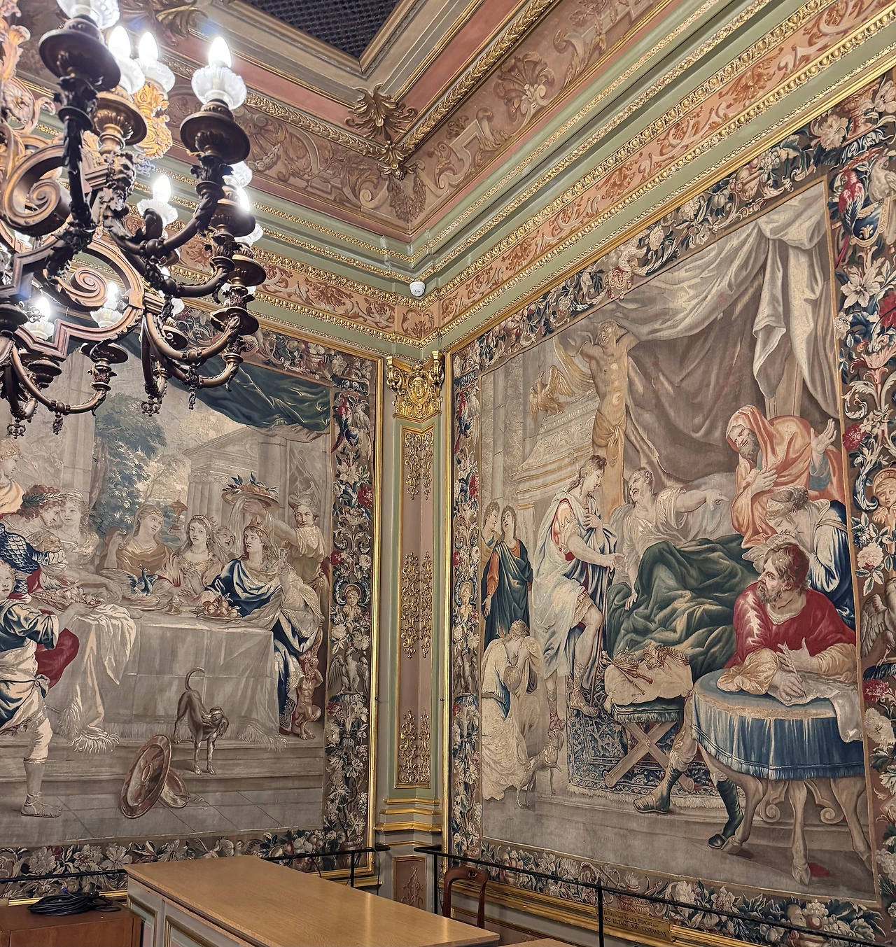 벨기에가 아직 플랑드르 왕국일 무렵, 플랑드르는 모직물 산업이 발달해 이를 수출하면서 부유한 경제 강국이 되었다. 그 중 특히 고가로 팔리던 것이 벽걸이용 태피스트리였다. 그 중 현재 벨기에의 수도인 브뤼셀은 태피스트리의 중심지였다고 한다. 그래서 이 시청사의 방 곳곳에서 직조물을 볼 수 있다. 직조물은 일반 유화그림처럼 일반적인 그림이 그려져있다. 이를 천에 그렸다 뿐이지 말이다. 그 정교함과 보존의 품질은 가히 놀라운 수준이다. 벨기에스러운 화려함과 당대의 작품을 직접 느껴보고 싶다면 시청사만한 곳이 없다.