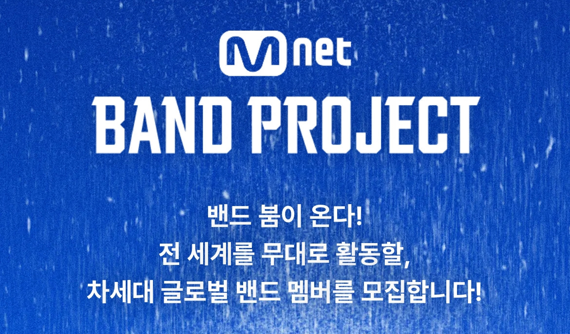 아이돌 데뷔 서바이벌 <프로듀스 101>부터 힙합 서바이벌 <쇼미더머니>, 댄스 서바이벌 <스트릿 우먼 파이터>까지. 장르를 불문하고 수많은 서바이벌 오디션 프로그램을 성공시켜 온 Mnet(이하 ‘엠넷’)이 지난 3월 1일부터 차세대 글로벌 밴드 결성을 위한 새로운 서바이벌 프로그램 <BAND PROJECT (가제)>의 지원자 모집을 시작했습니다.