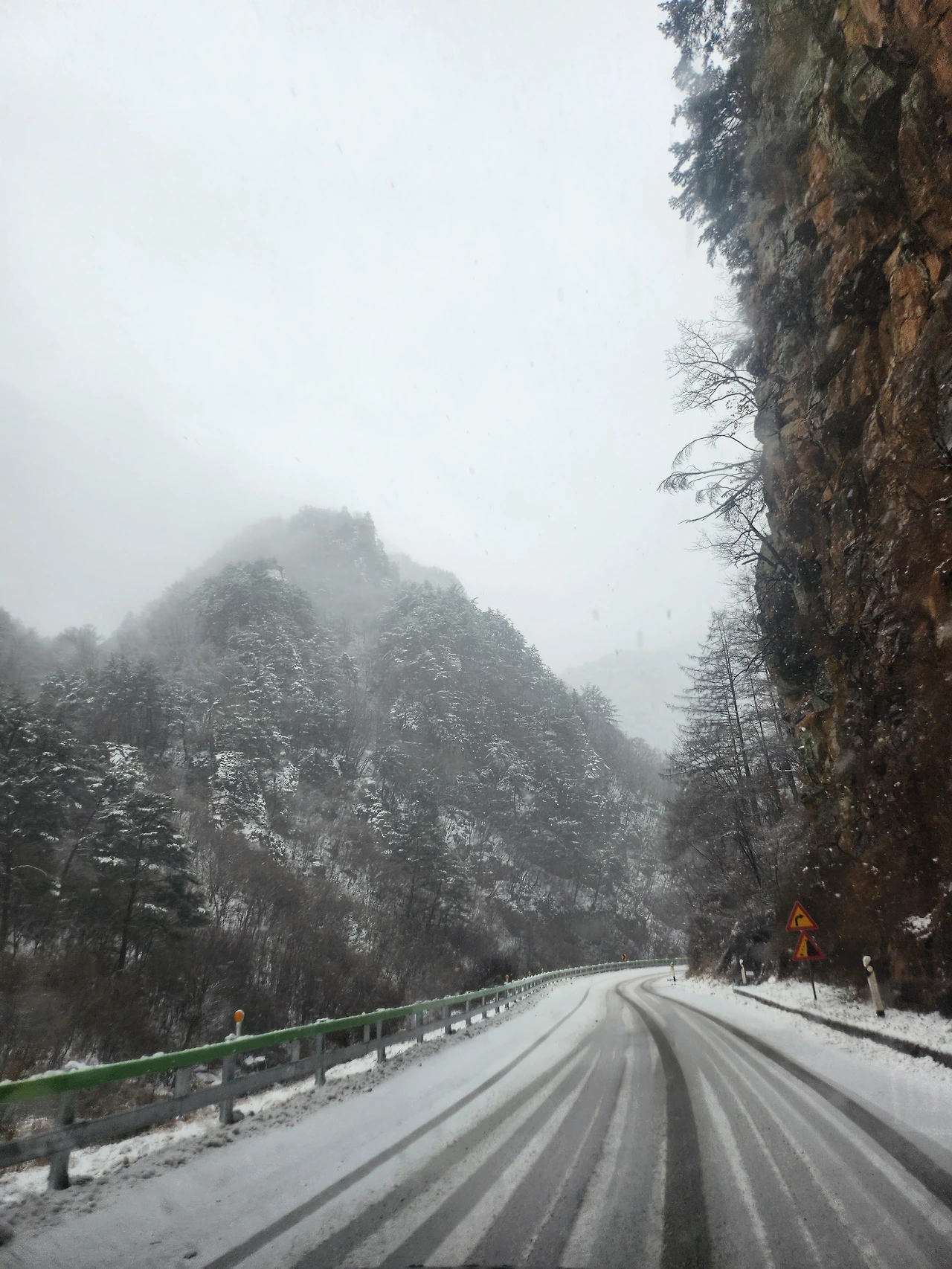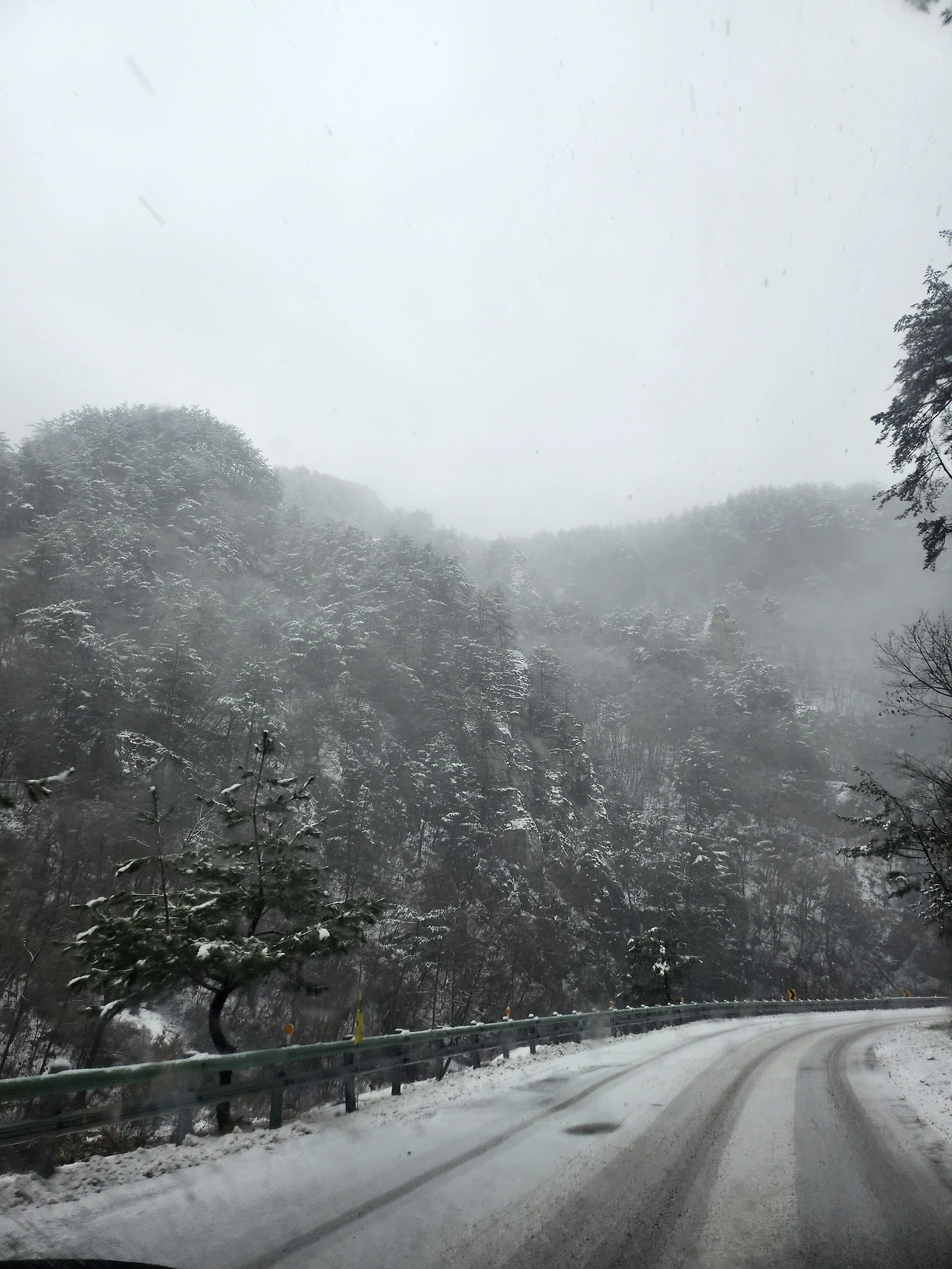 조심히 천천히 가자고 이야기를 하며 달리는데 도로에 계속 쌓이면서 얼어붙는 눈과 거세지는 눈보라 그리고 계속되는 산을 올라가야 하는 굽이진 도로