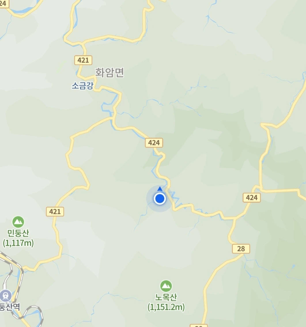 지도 앱을 켜봐도 산 한가운데 턱 하니 자리 잡고 있는 우리 위치, 앞 뒤로만 나있는 길은 모두 구불구불 산을 타고 넘어가야만 했다
